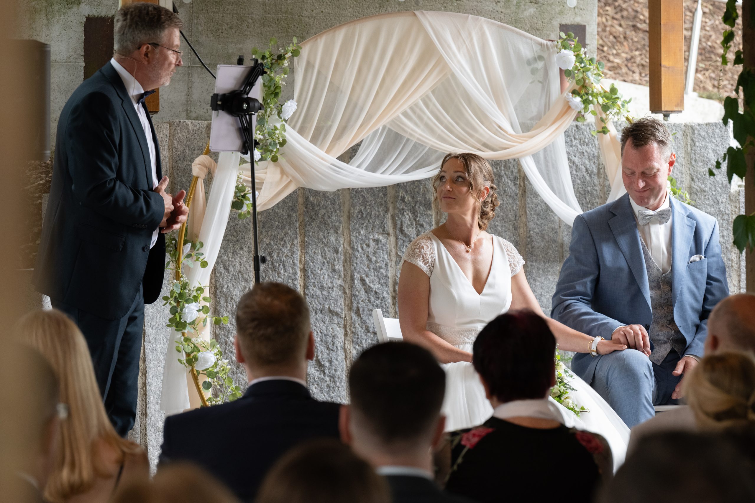 Die Traurede war wirklich wunderschön. Die Art und Weise wie Roland erzählt hat, hat einige unserer Gäste zu Tränen gerührt. Wir sind wirklich froh, ihn gefunden und als unseren Trauredner ausgewählt zu haben. Vielen Lieben Dank, dass du (Roland) unseren Tag noch schöner gemacht hast. Wir können dich nur jedem weiterempfehlen! :)